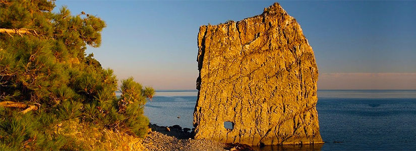 Скала «Парус» на берегу Черного моря, в 5 км от места проведения конференции.