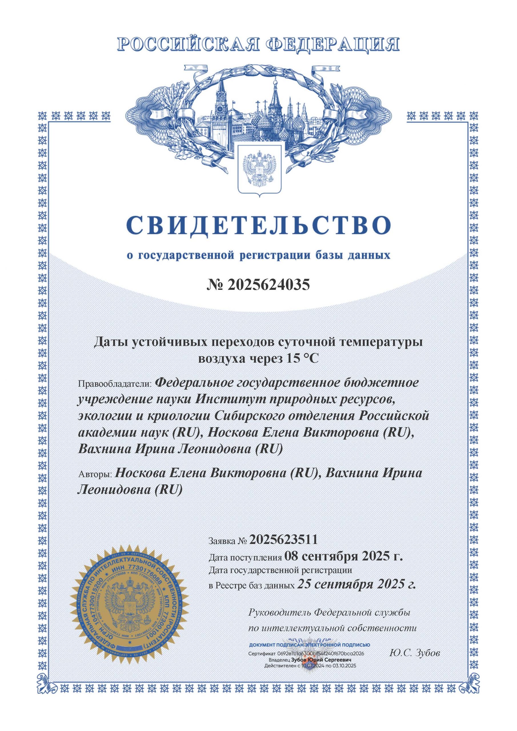 Зарегистрированные в Федеральной службе по интеллектуальной собственности (Роспатент) базы данных включают ряды расчетных значений дат устойчивых переходов суточной температуры воздуха весной и осенью через 0, 5, 10, 15 °С, а также данные о продолжительности этих периодов на территории Забайкальского края за 1976–2023 гг. Они предназначены для оценки динамики климатических характеристик в фундаментальных и прикладных исследованиях, в том числе для климатозависимых отраслей экономики (сельское хозяйство, энергетика), а также для оценки рисков и разработки стратегий адаптации к ним в условиях современных изменений климата при принятии управленческих решений.